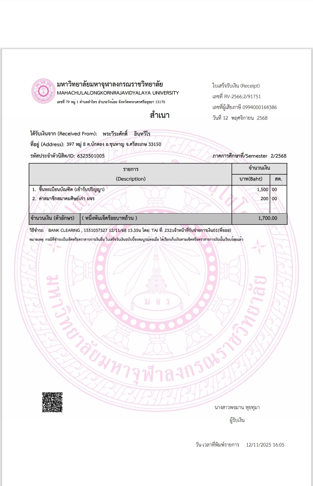 QR Code สำหรับสแกนเข้าร่วมพิธี * เข้าพิธีประสาทปริญญาวันที่ 6 ธันวาคม 2568 |
