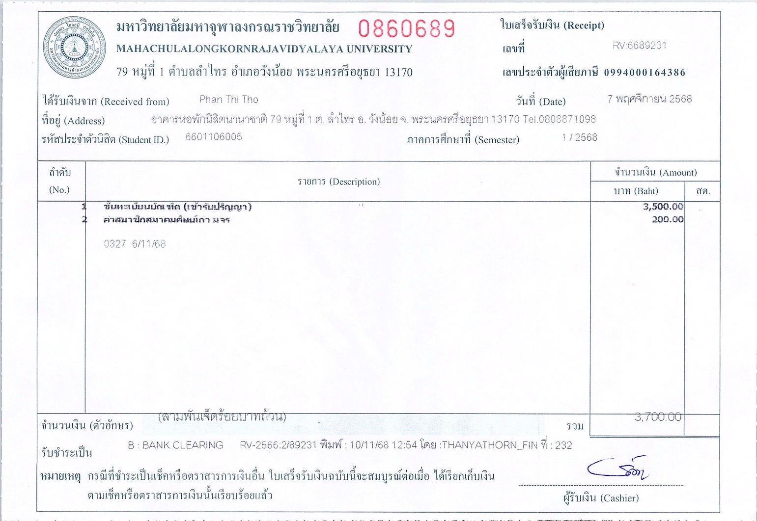 | รหัสนิสิต : 6601106005 | ชื่อ : Phan Thi Tho | ฉายา: - | นามสกุล: - |