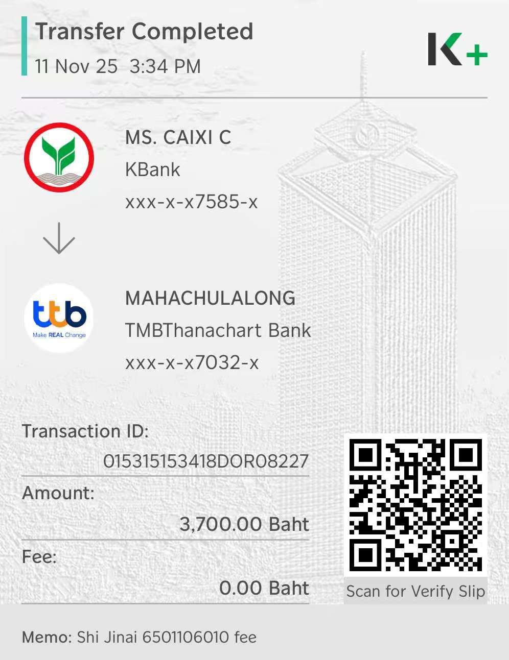 รหัสนิสิต : 6501106010 ชื่อ : Shi Jinai ฉายา: - นามสกุล: -