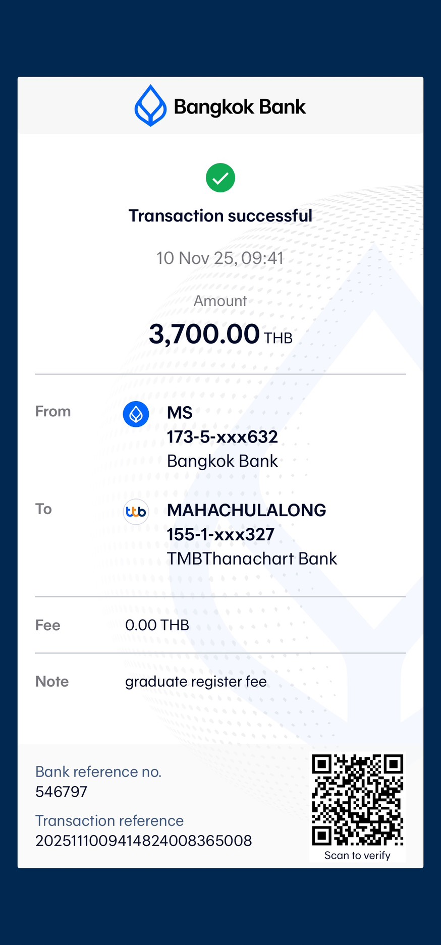 QR Code สำหรับสแกนเข้าร่วมพิธี * เข้าพิธีประสาทปริญญาวันที่ 7 ธันวาคม 2568 |