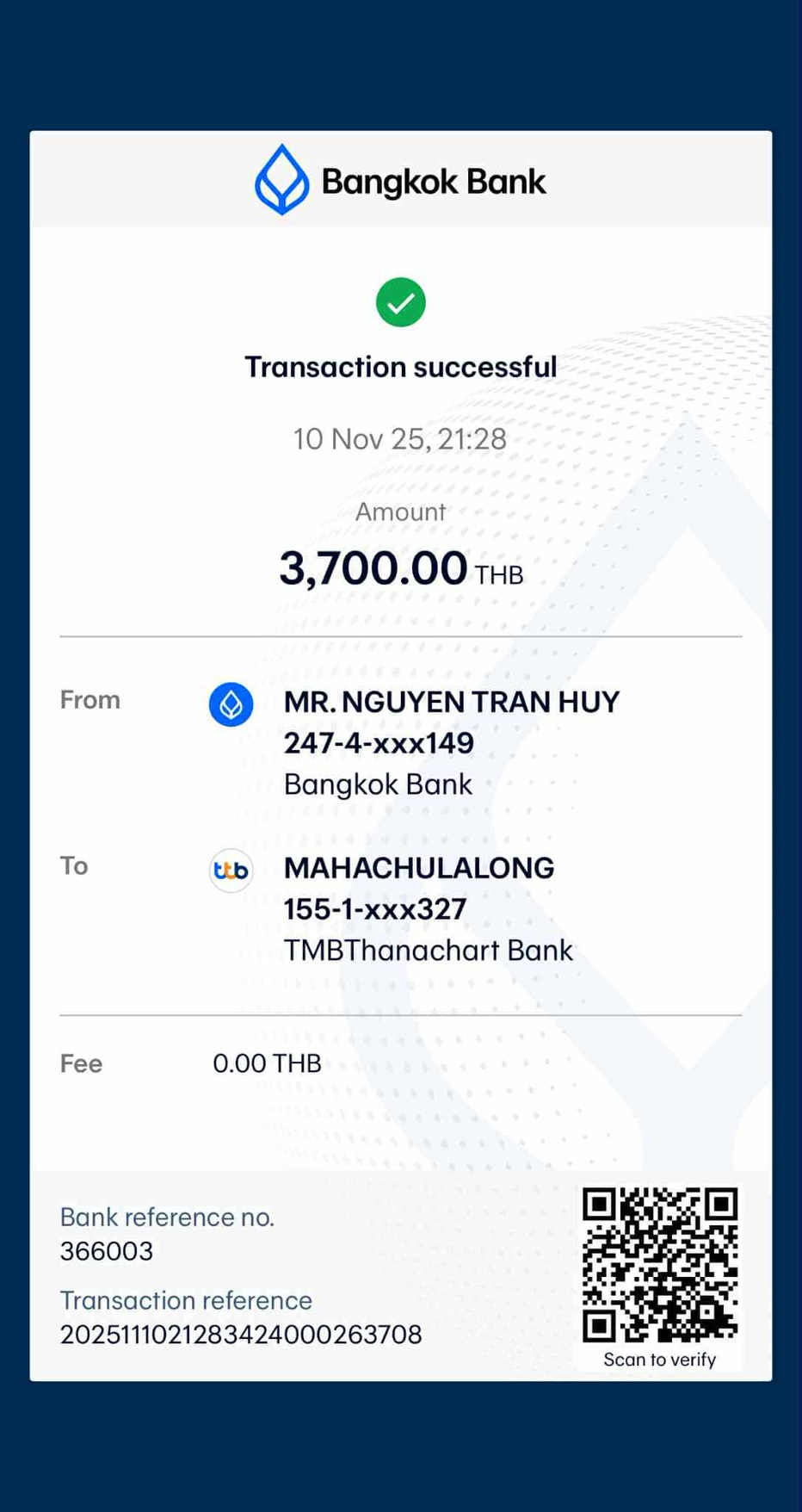 | รหัสนิสิต : 6101106008 | ชื่อ : Pham Thi Tuyet Tam | ฉายา: - | นามสกุล: - |
