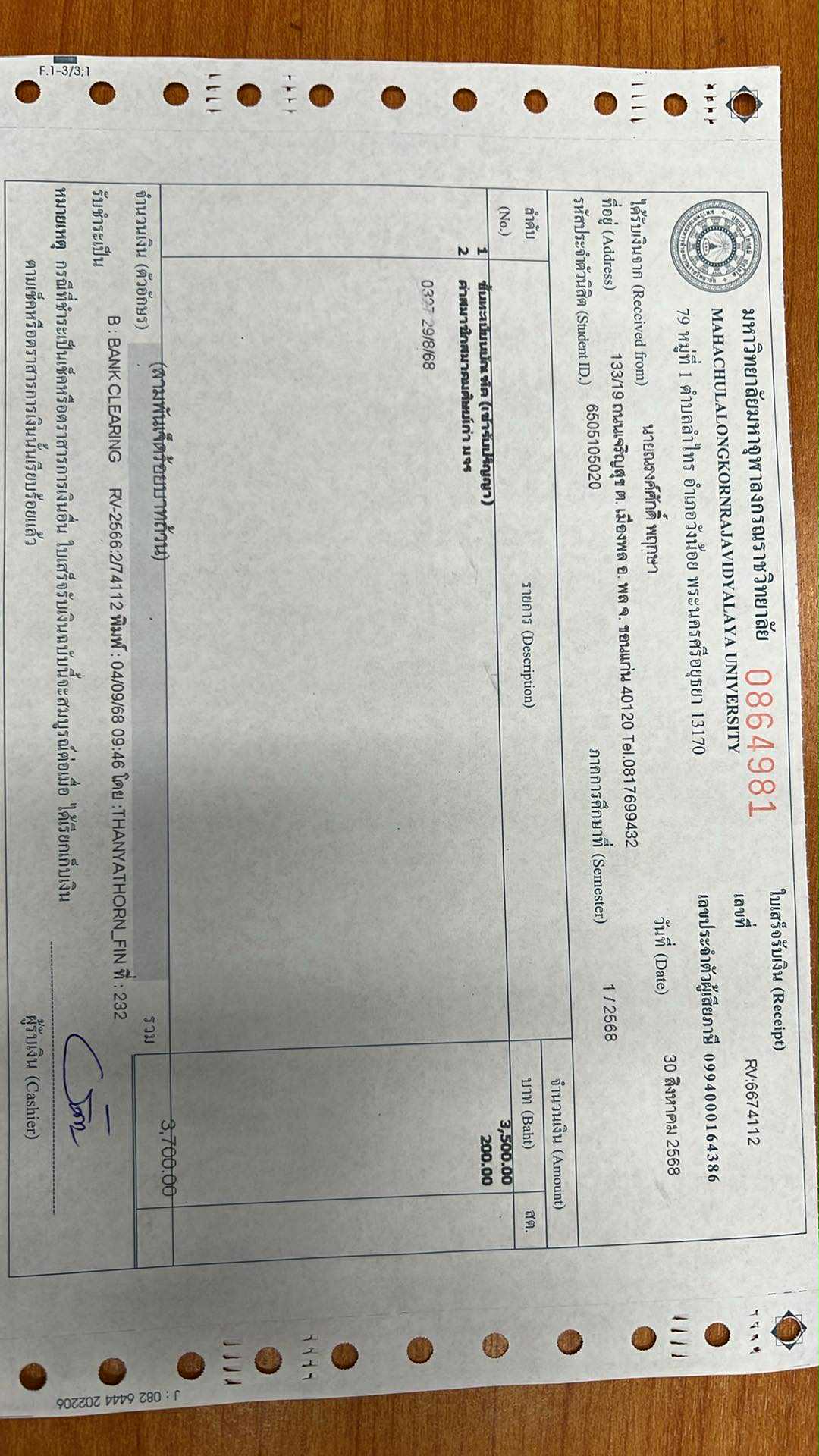 ใบเสร็จรับเงิน/เอกสารยืนยันการชำระเงิน(แนบเอกสาร)