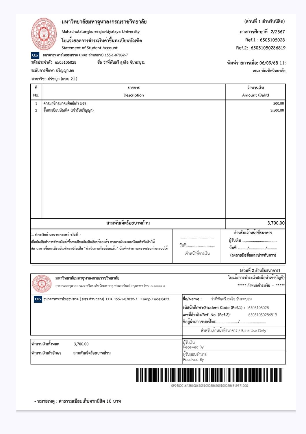 | รหัสนิสิต : 6505105028 | ชื่อ : ว่าที่พันตรี สุดใจ | ฉายา: - | นามสกุล: จันทะบุรม |