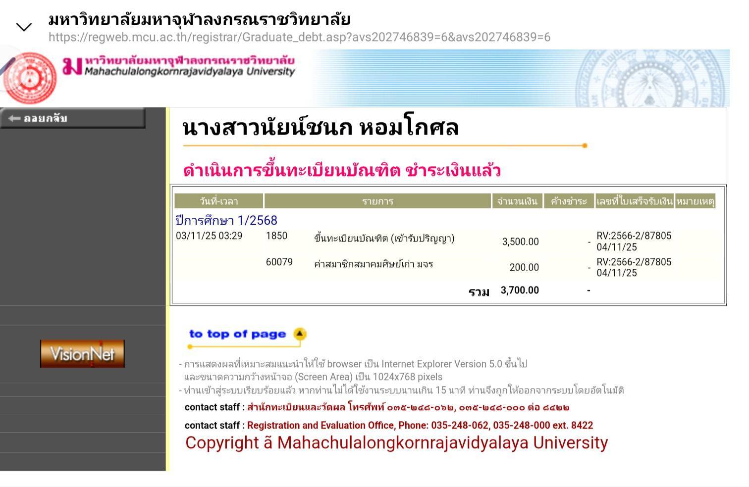 * เข้าพิธีประสาทปริญญาวันที่ 7 ธันวาคม 2568