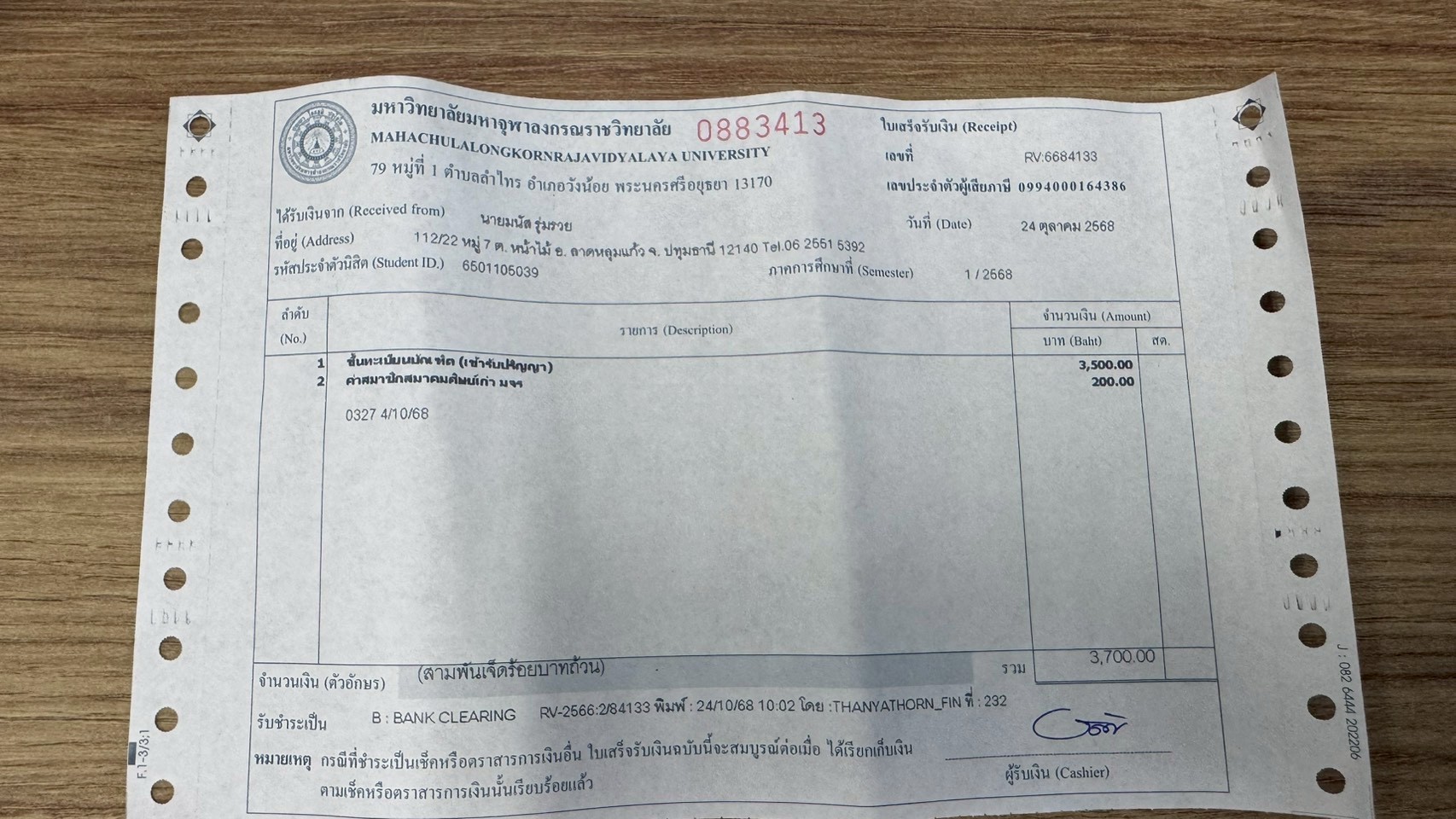 ใบเสร็จรับเงิน/เอกสารยืนยันการชำระเงิน(แนบเอกสาร)