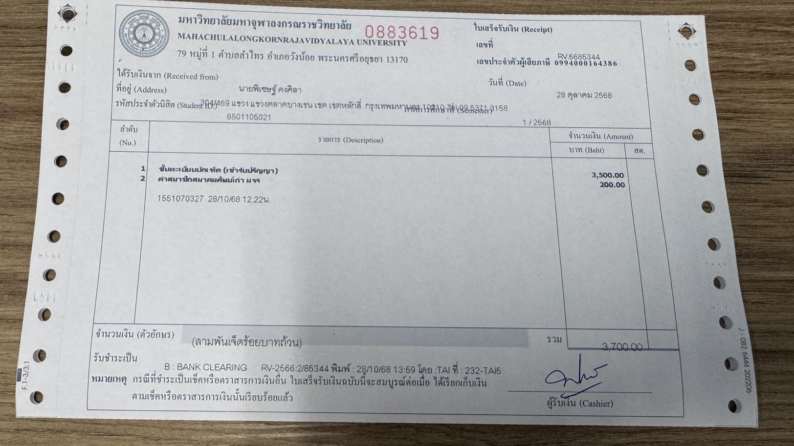 | รหัสนิสิต : 6501105021 | ชื่อ : นายพิเชษฐ์ | ฉายา: - | นามสกุล: คงศิลา |