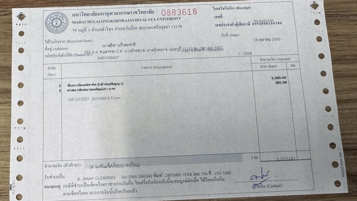 | รหัสนิสิต : 6401105037 | ชื่อ : นางสุริสา | ฉายา: - | นามสกุล: แก้วสมชาติ |
