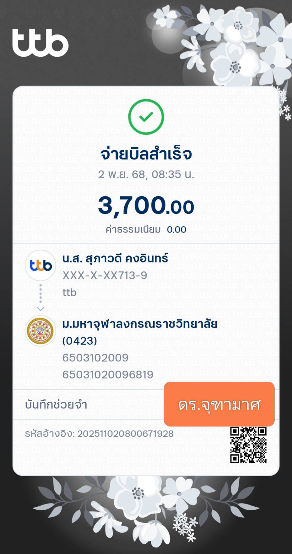 QR Code สำหรับสแกนเข้าร่วมพิธี * เข้าพิธีประสาทปริญญาวันที่ 7 ธันวาคม 2568 |