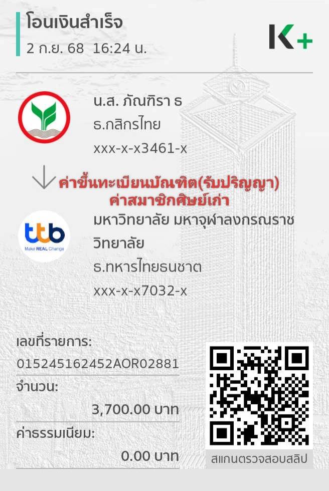 QR Code สำหรับสแกนเข้าร่วมพิธี * เข้าพิธีประสาทปริญญาวันที่ 7 ธันวาคม 2568 |