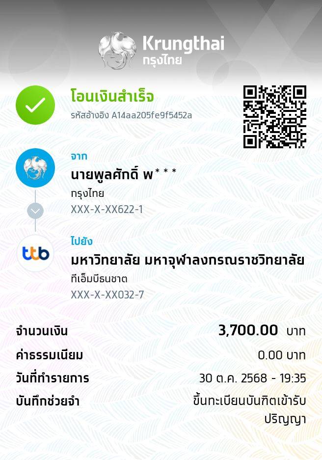 QR Code สำหรับสแกนเข้าร่วมพิธี * เข้าพิธีประสาทปริญญาวันที่ 7 ธันวาคม 2568 |