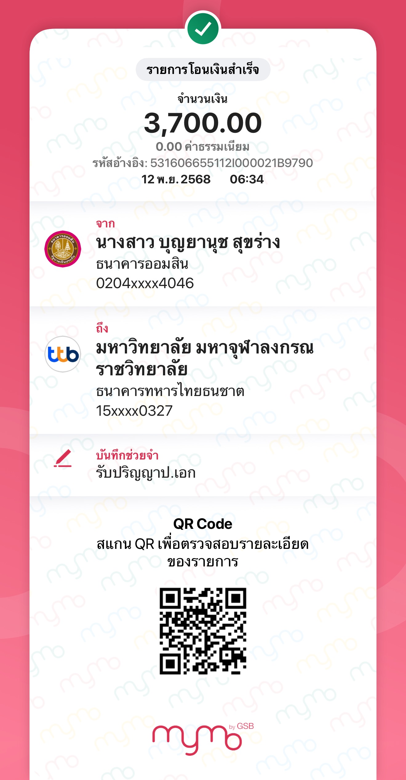 QR Code สำหรับสแกนเข้าร่วมพิธี * เข้าพิธีประสาทปริญญาวันที่ 7 ธันวาคม 2568 |