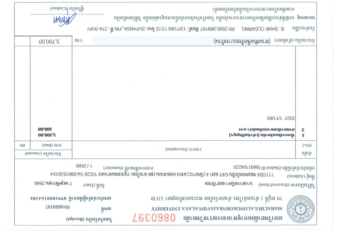 | รหัสนิสิต : 6601104220 | ชื่อ : นางสาวพนิดา | ฉายา: - | นามสกุล: อมราวิกรม |