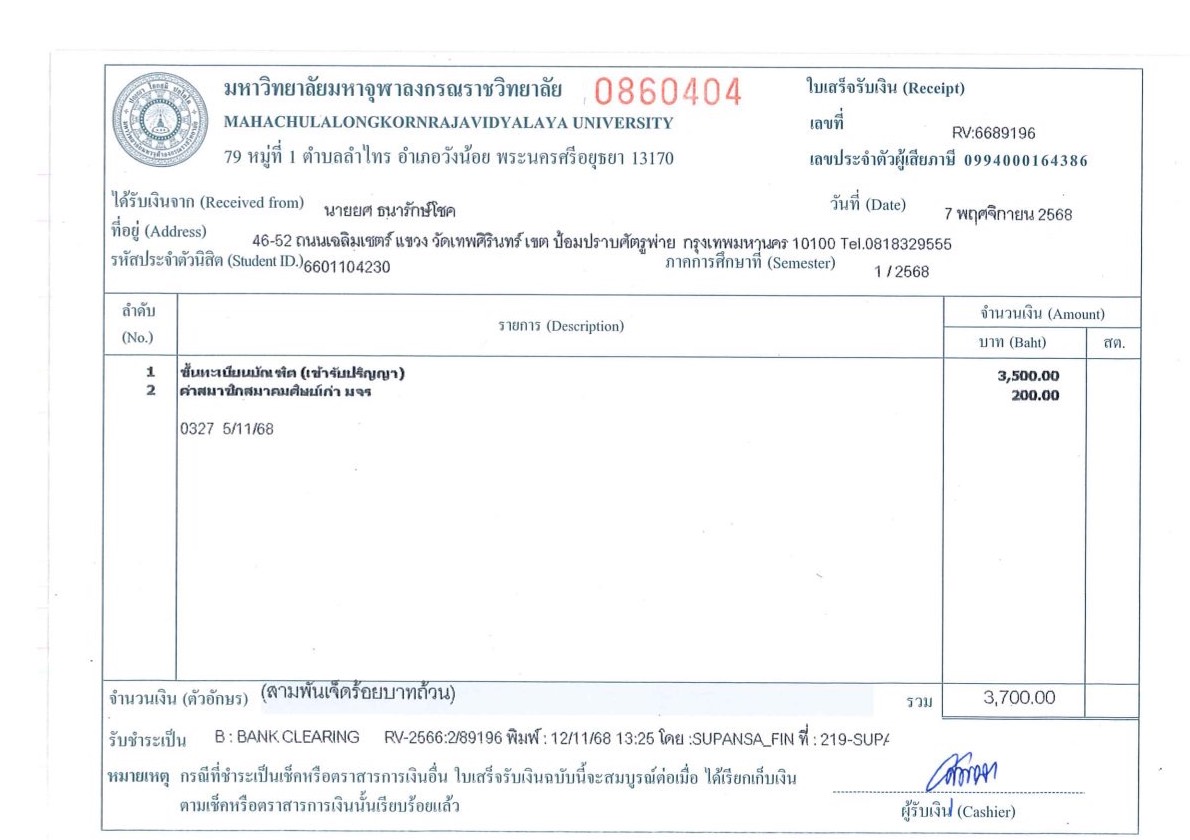 | รหัสนิสิต : 6601104230 | ชื่อ : นายยศ | ฉายา: - | นามสกุล: ธนารักษ์โชค |