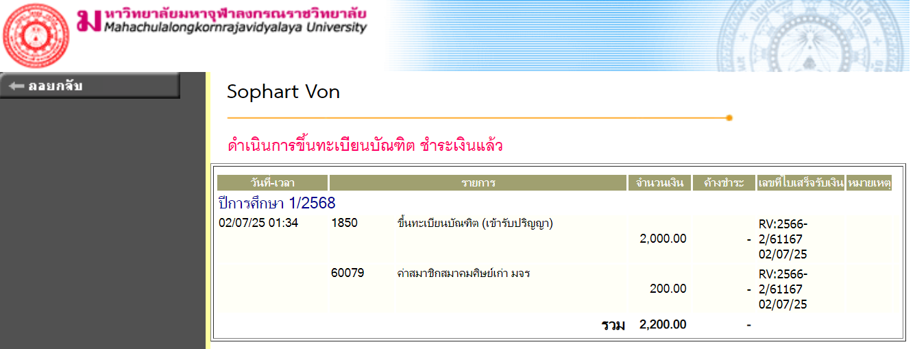 | รหัสนิสิต : 6401205027 | ชื่อ : Sophart | ฉายา: - | นามสกุล: Von |