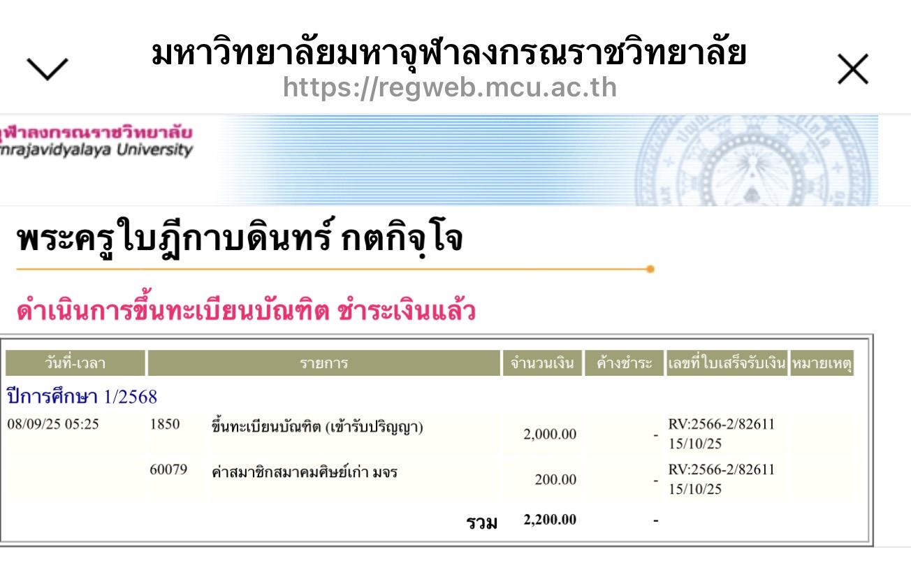 | รหัสนิสิต : 6601205020 | ชื่อ : พระครูใบฎีกาบดินทร์ | ฉายา: กตกิจฺโจ | นามสกุล: เพ็ญวงษ์ |