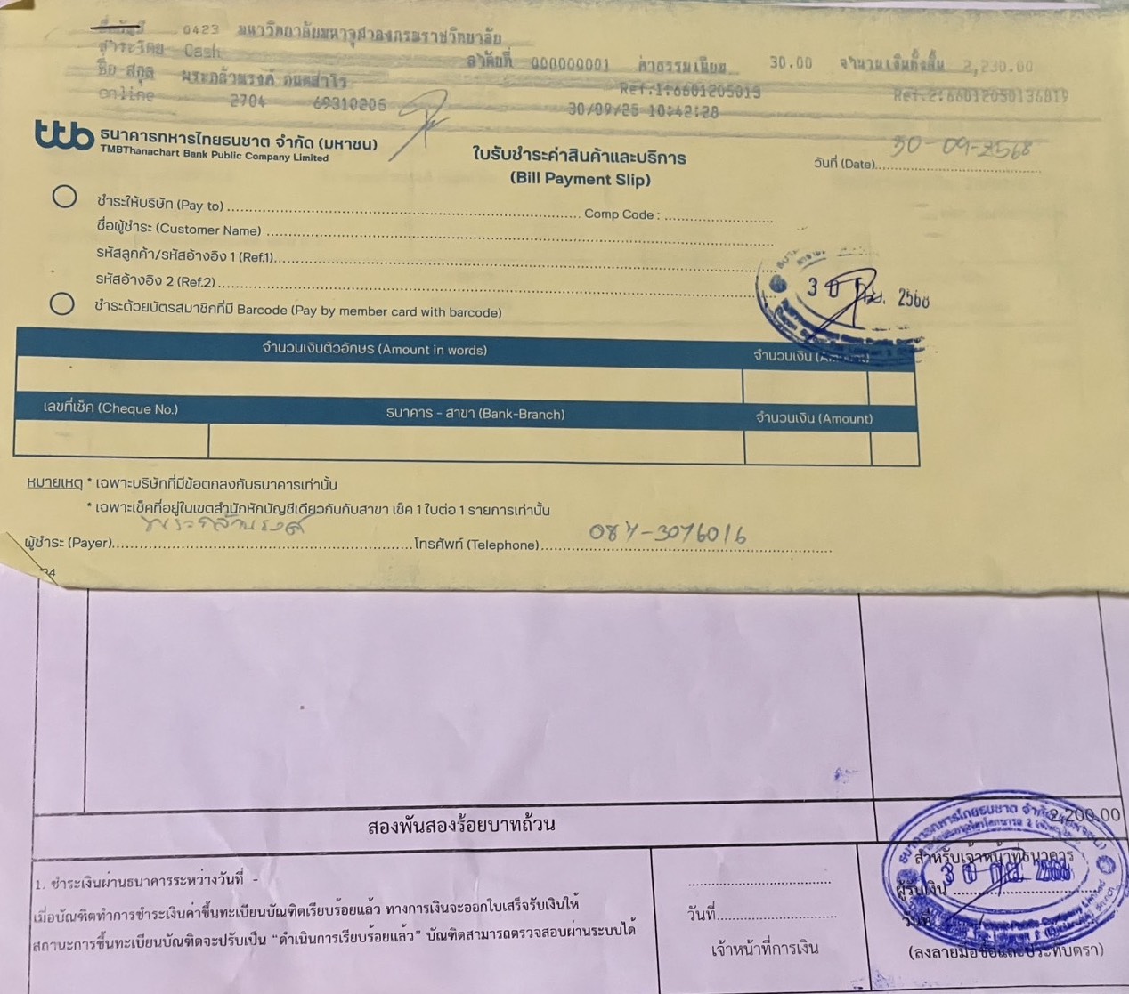ใบเสร็จรับเงิน/เอกสารยืนยันการชำระเงิน(แนบเอกสาร)