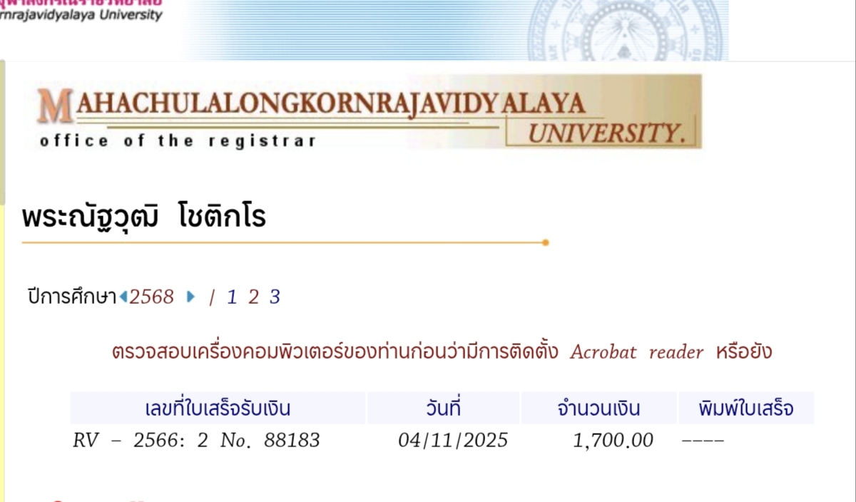| สถานะเข้าพิธีประสาทปริญญา : บรรพชิต | ระดับ : ปริญญาตรี | สังกัดคณะ: คณะพุทธศาสตร์ | สาขาวิชา: พระพุทธศาสนา |