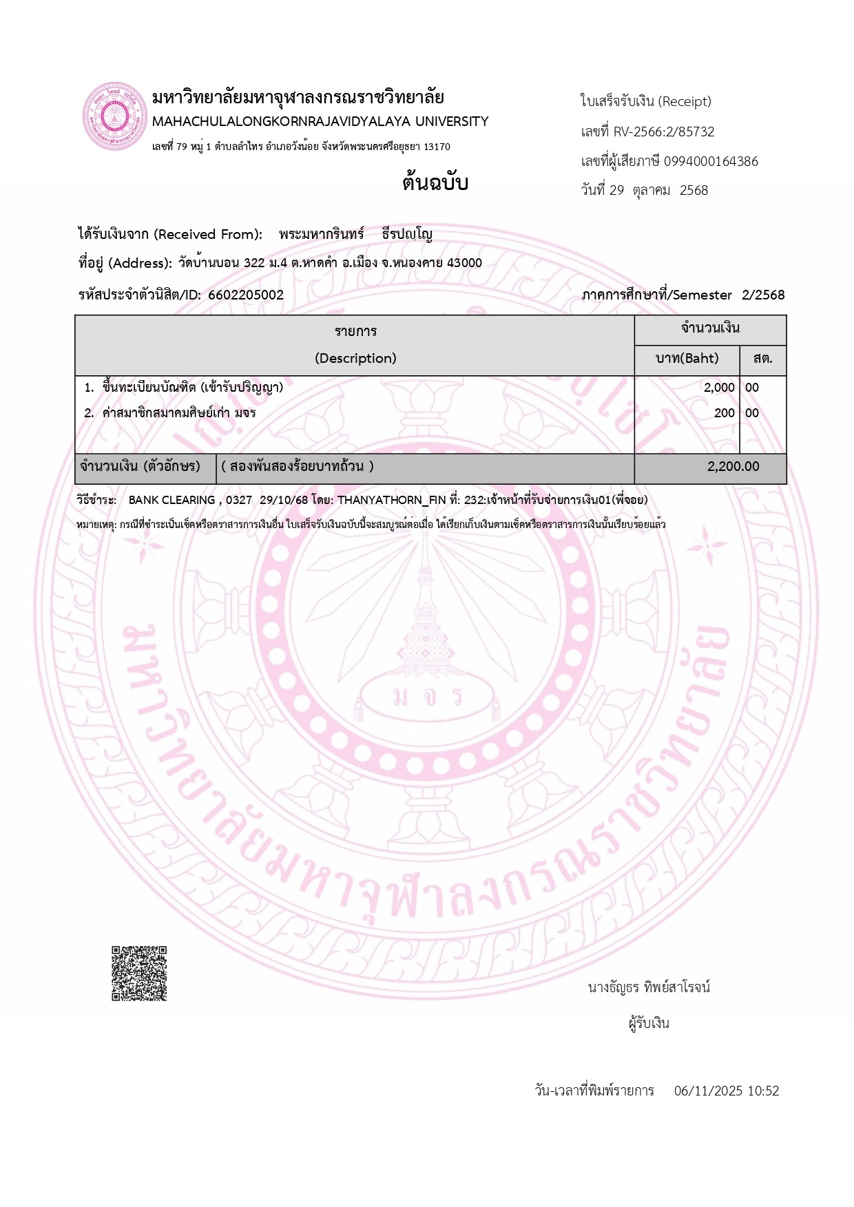| รหัสนิสิต : 6602205002 | ชื่อ : พระมหากรินทร์ | ฉายา: ธีรปญฺโญ | นามสกุล: ทองคำ |