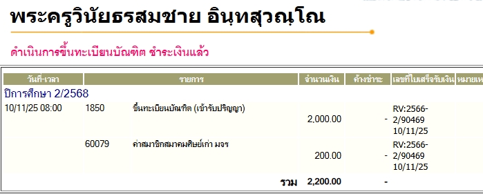 สถานะเข้าพิธีประสาทปริญญา : บรรพชิต ระดับ : ปริญญาโท สังกัดคณะ: บัณฑิตวิทยาลัย สาขาวิชา: พุทธศาสตรมหาบัณฑิต
