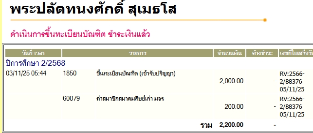 | รหัสนิสิต : 6603205027 | ชื่อ : พระปลัดทนงศักดิ์ | ฉายา: สุเมธโส | นามสกุล: ฤทธิชัย |