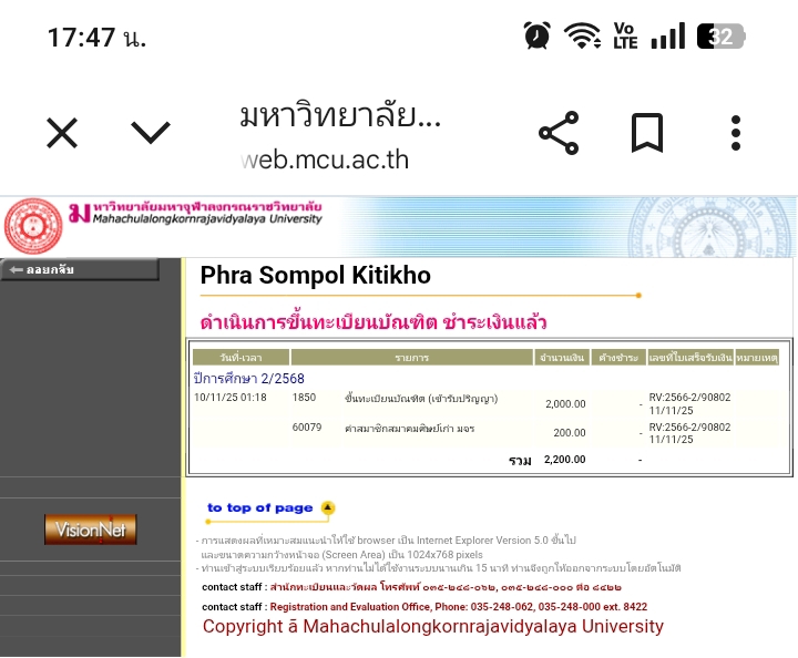 | รหัสนิสิต : 6603205042 | ชื่อ : Phra Sompol | ฉายา: Seng | นามสกุล: Boon |