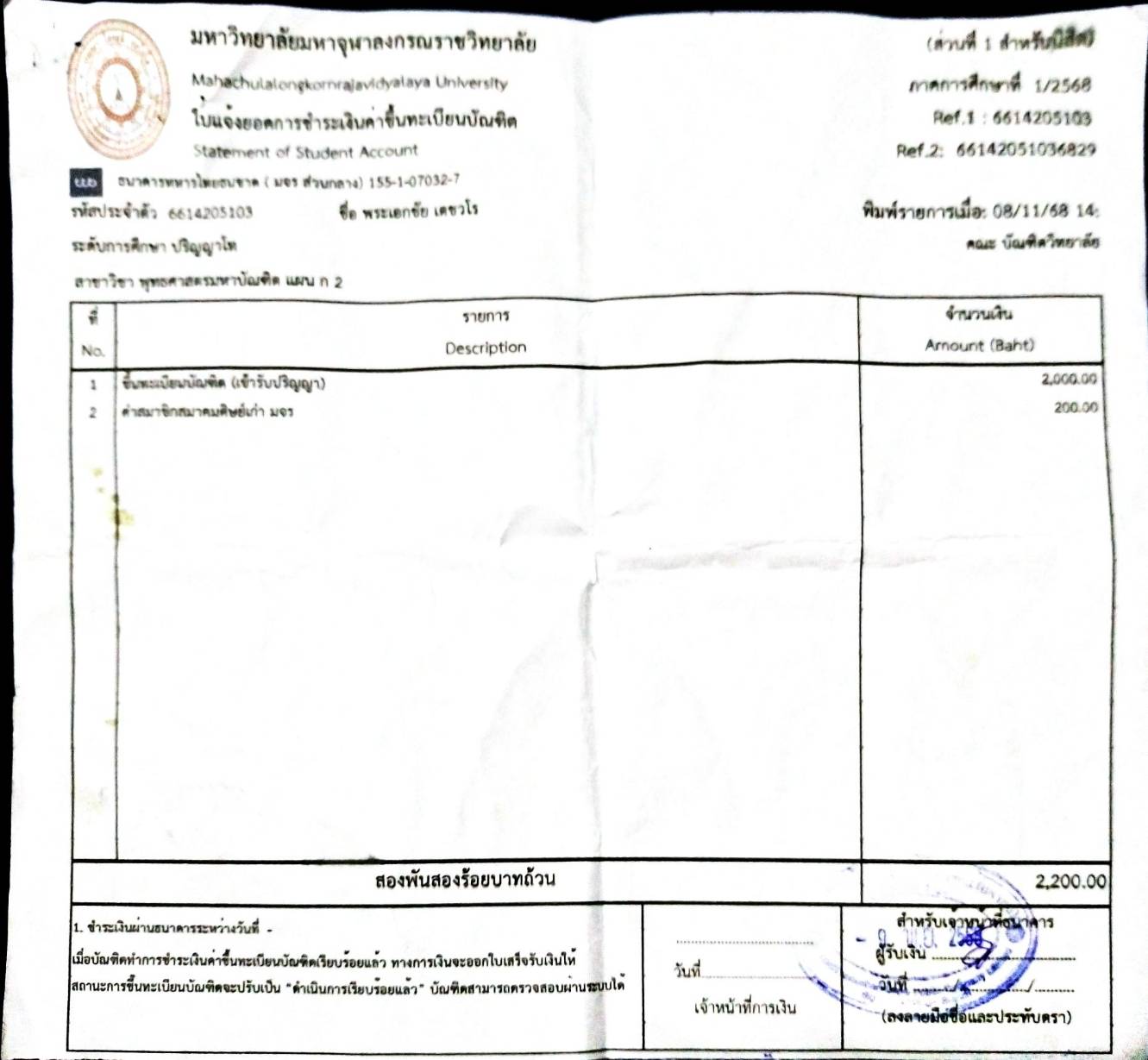 รหัสนิสิต : 6614205103 ชื่อ : พระเอกชัย ฉายา: เตชวโร นามสกุล: กันทะทอน