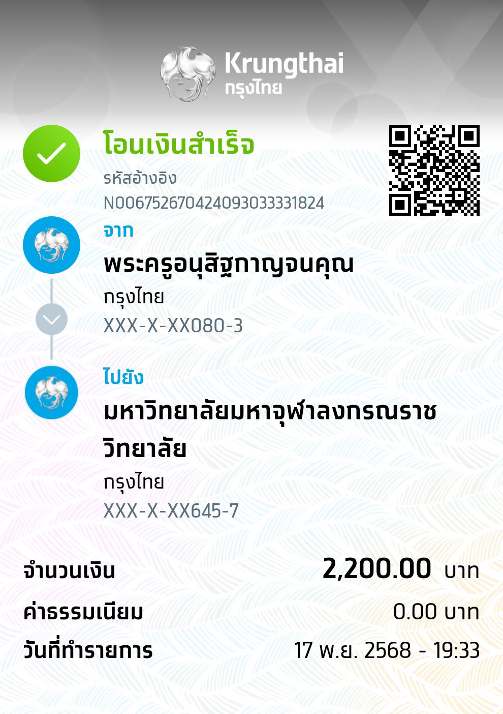 * เข้าพิธีประสาทปริญญาวันที่ 7 ธันวาคม 2568