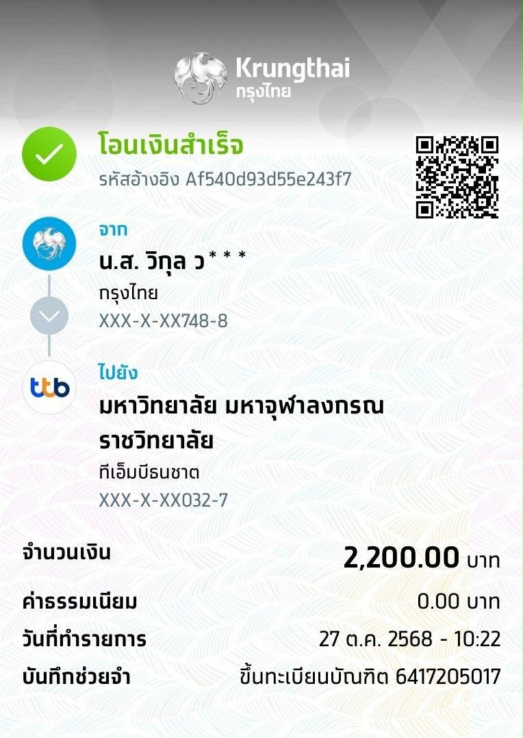 * เข้าพิธีประสาทปริญญาวันที่ 7 ธันวาคม 2568