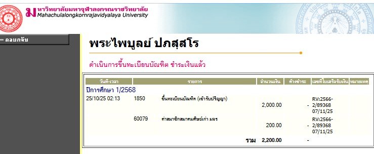 | รหัสนิสิต : 6517205007 | ชื่อ : พระไพบูลย์ | ฉายา: ปภสฺสโร | นามสกุล: ทักขินัย |