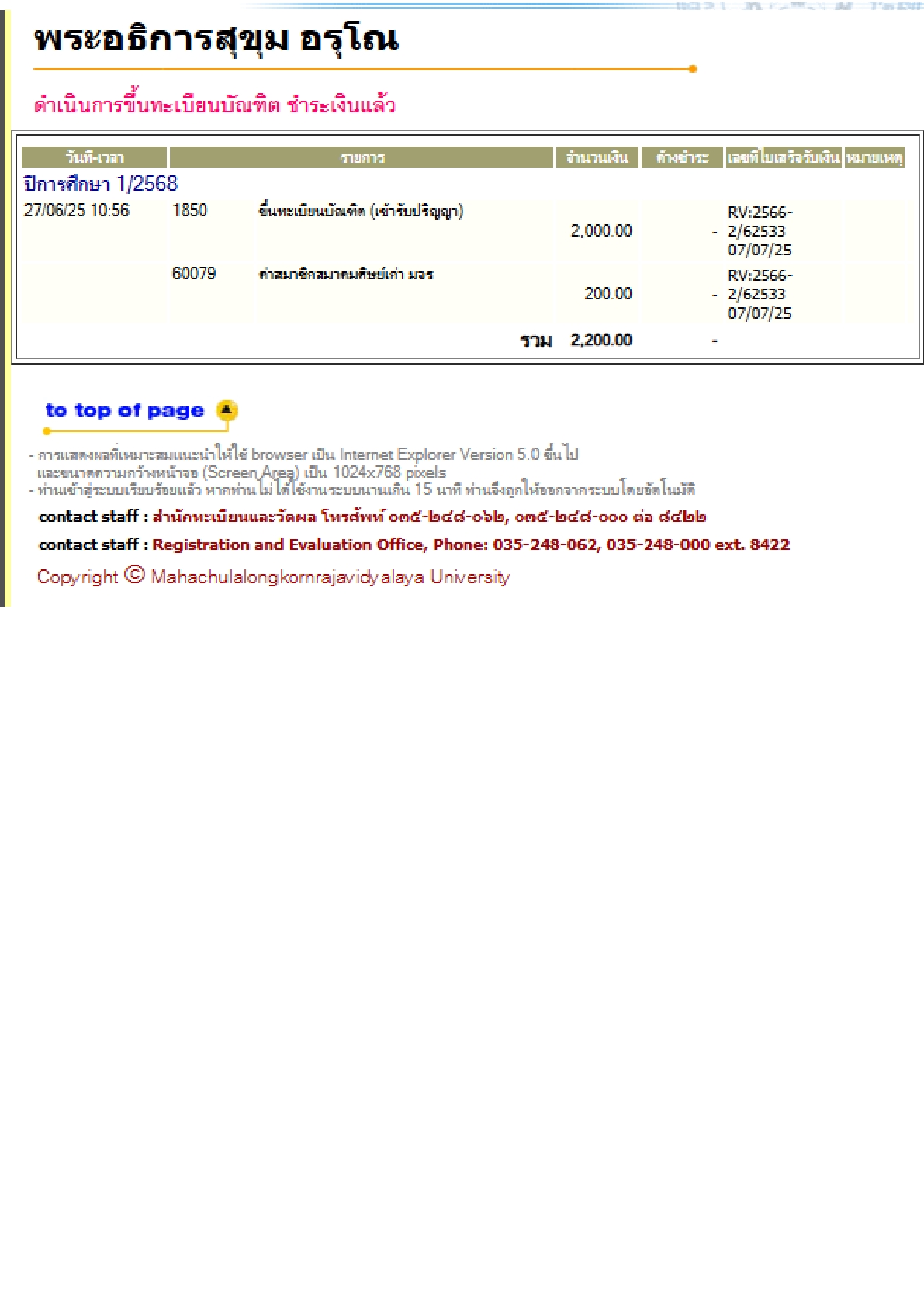 | สถานะเข้าพิธีประสาทปริญญา : บรรพชิต | ระดับ : ปริญญาโท | สังกัดคณะ: บัณฑิตวิทยาลัย | สาขาวิชา: พระพุทธศาสนา |