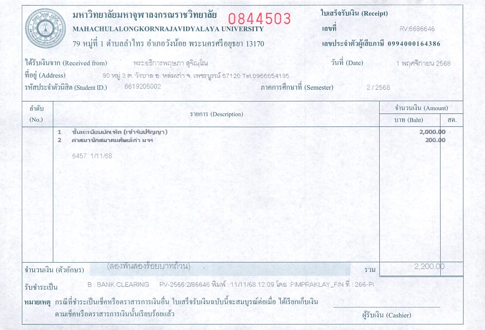 | รหัสนิสิต : 6619205002 | ชื่อ : พระอธิการพฤษภา | ฉายา: สุจิณฺโณ | นามสกุล: คำหมู่ |