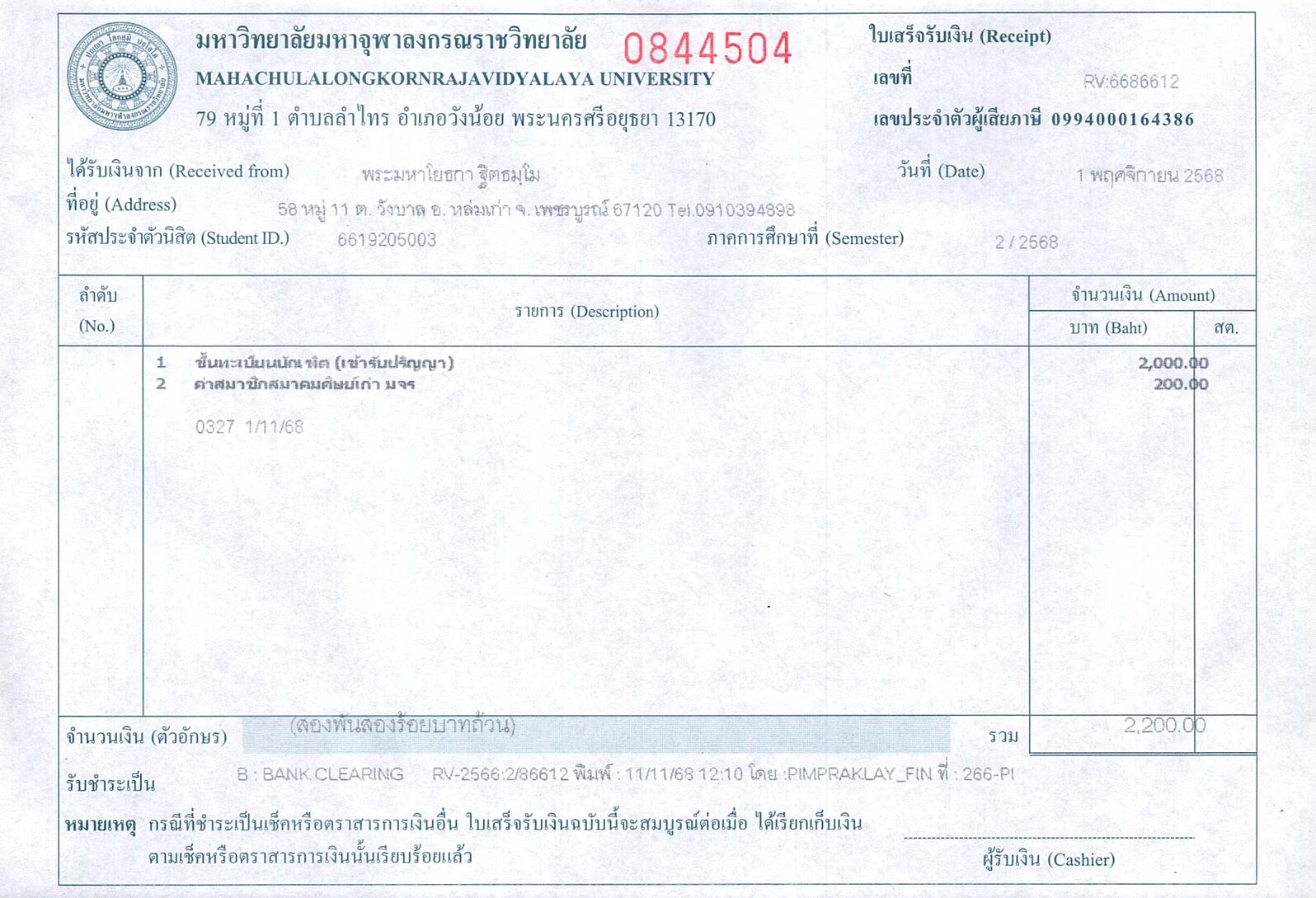 | รหัสนิสิต : 6619205003 | ชื่อ : พระมหาโยธกา | ฉายา: ฐิตธมฺโม | นามสกุล: สายคำบ่อ |