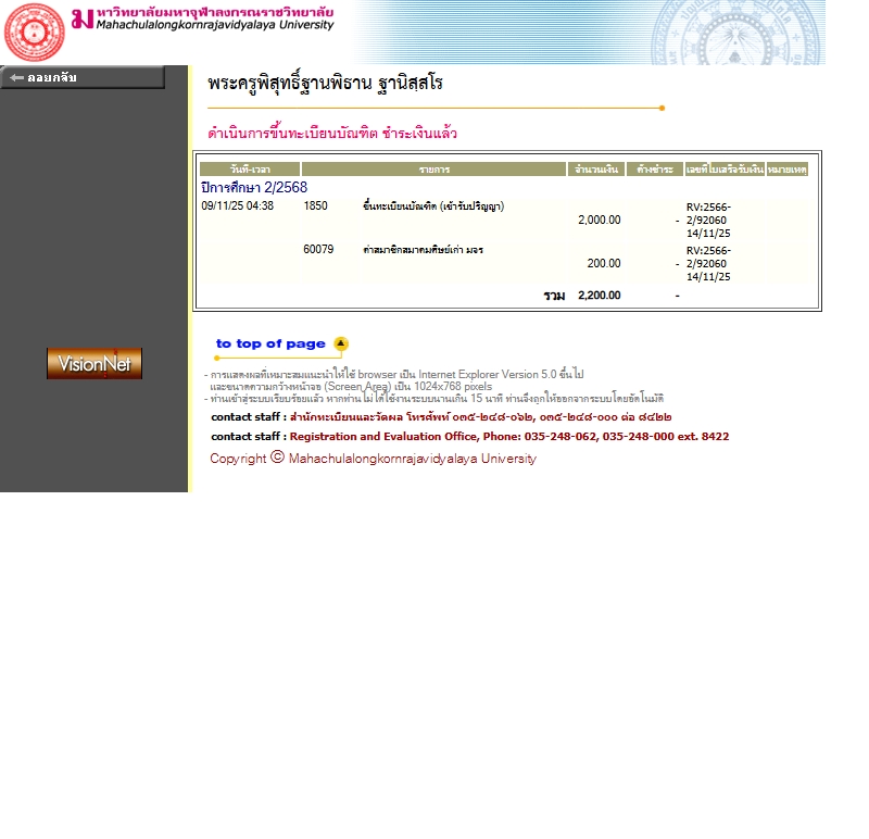 | ส่วนงานจัดการศึกษา : วิทยาลัยสงฆ์พุทธปัญญาศรีทวารวดี | |||
