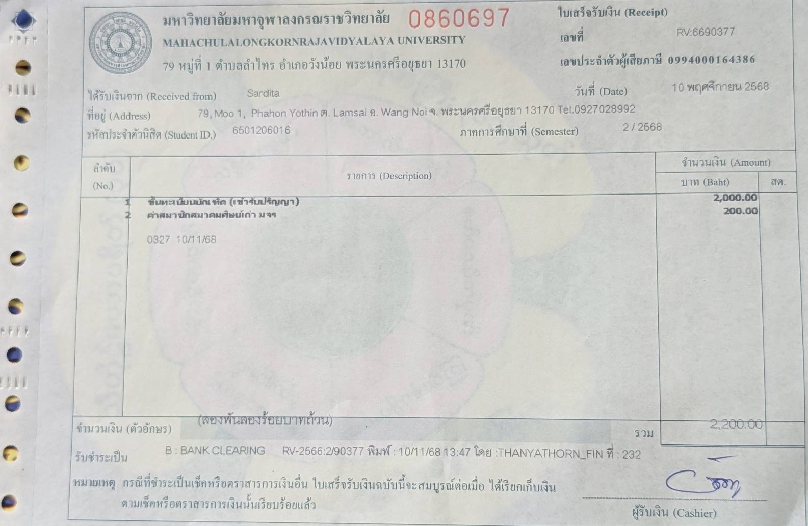 | รหัสนิสิต : 6501206016 | ชื่อ : Sardita | ฉายา: - | นามสกุล: - |