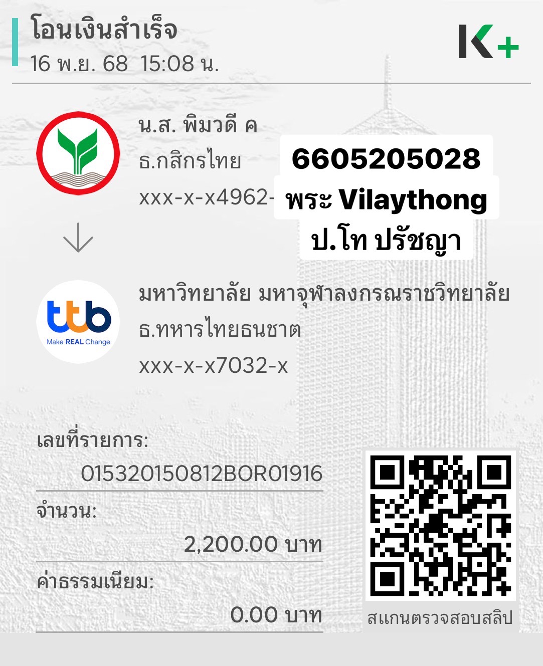 | รหัสนิสิต : 6605205028 | ชื่อ : Vilaythong | ฉายา: - | นามสกุล: Thongmixay |