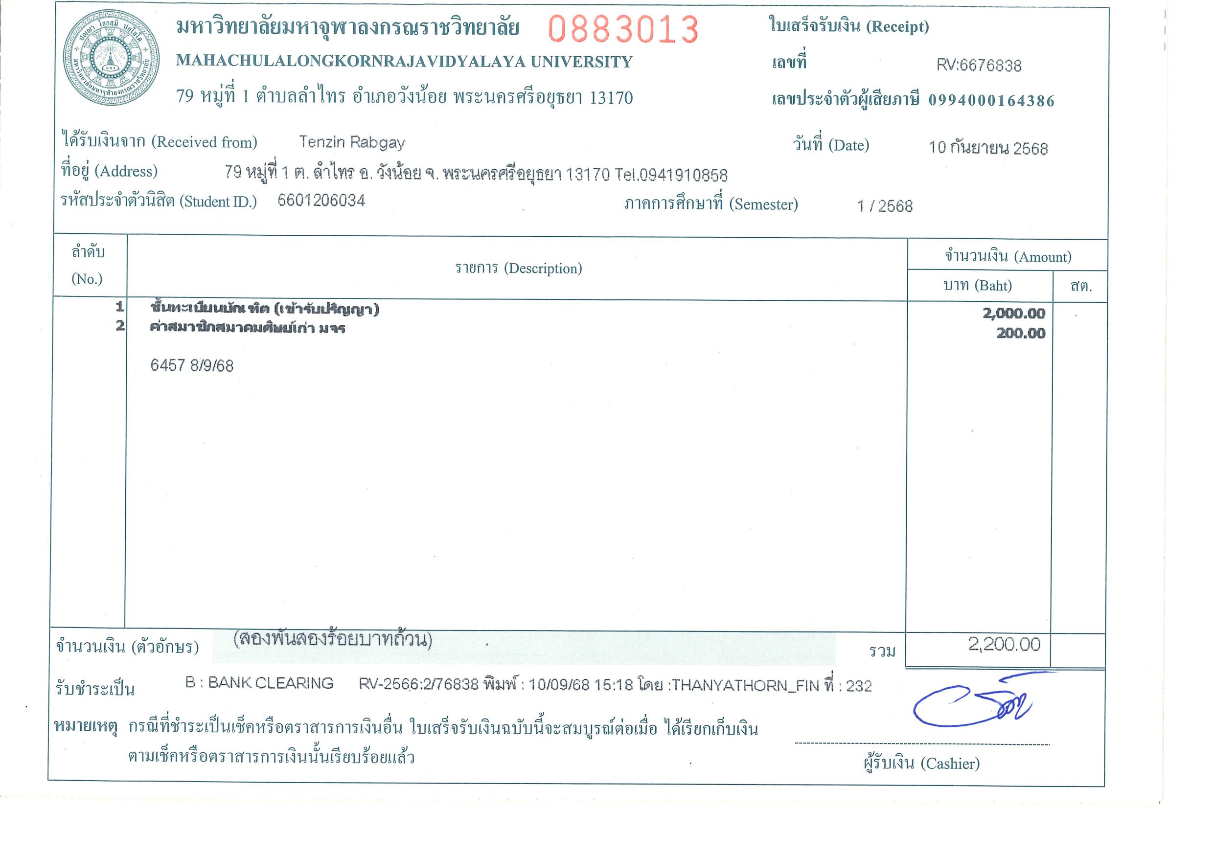 | รหัสนิสิต : 6601206034 | ชื่อ : Tenzin Rabgay | ฉายา: - | นามสกุล: - |