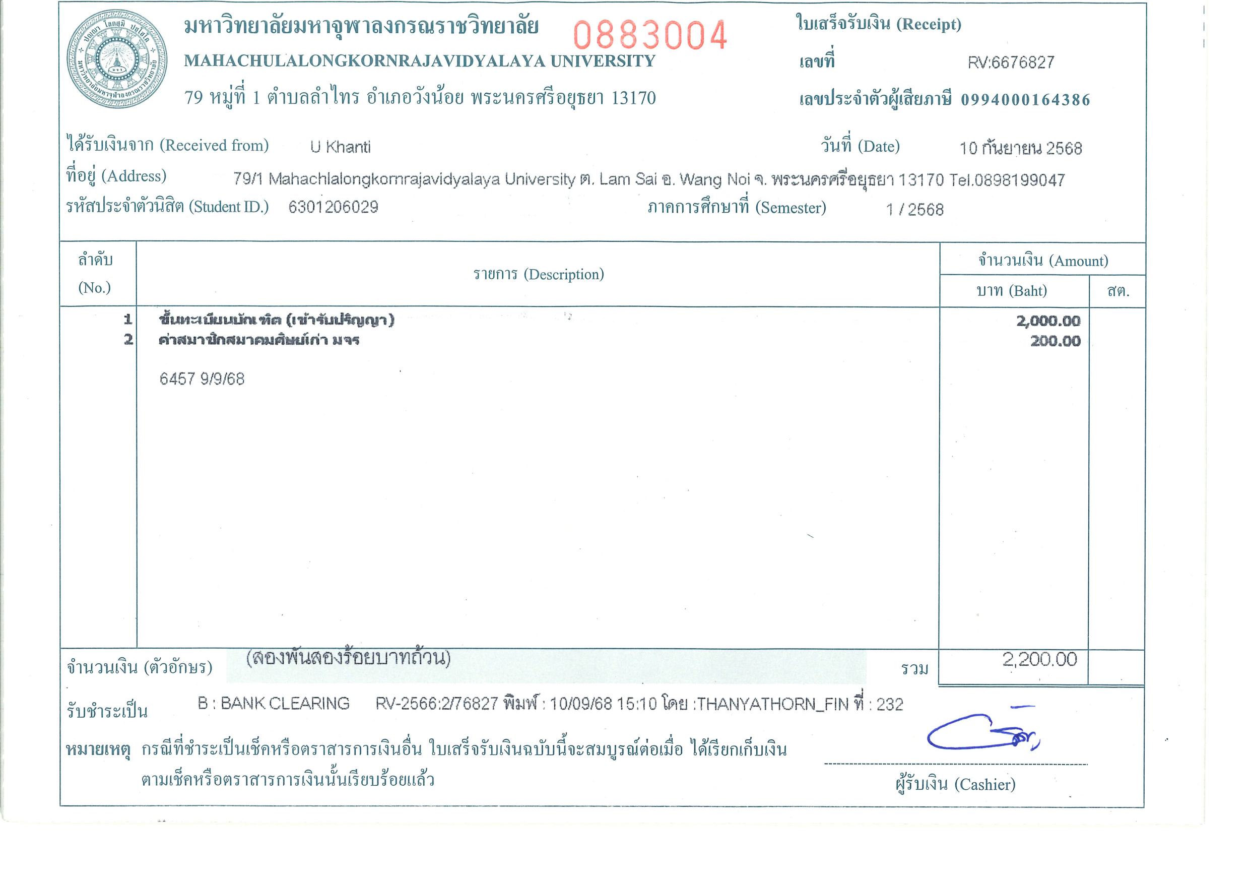 | รหัสนิสิต : 6301206029 | ชื่อ : U Khanti | ฉายา: - | นามสกุล: - |