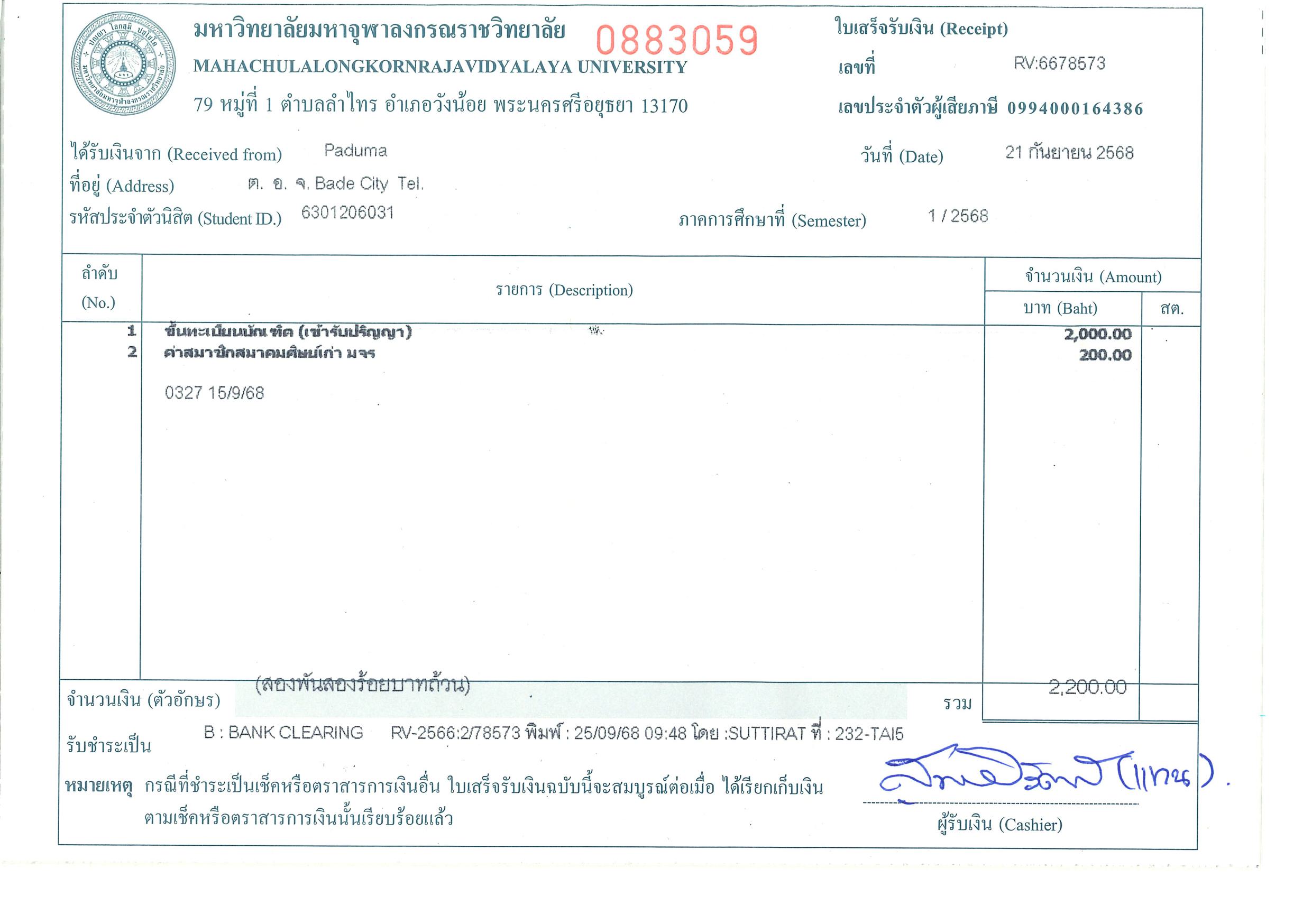 | รหัสนิสิต : 6301206031 | ชื่อ : Paduma | ฉายา: - | นามสกุล: - |
