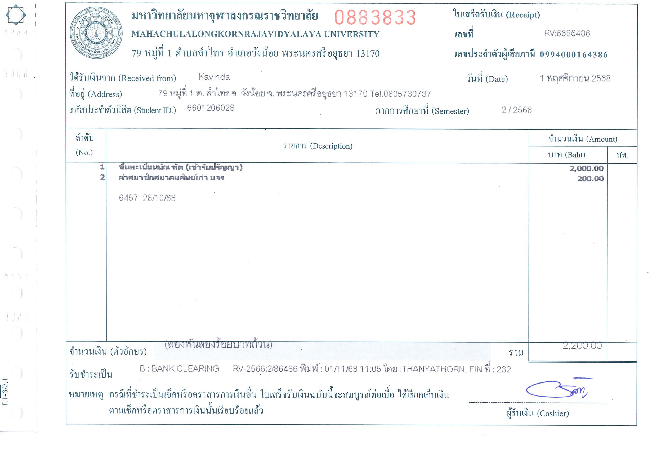 ใบเสร็จรับเงิน/เอกสารยืนยันการชำระเงิน(แนบเอกสาร)