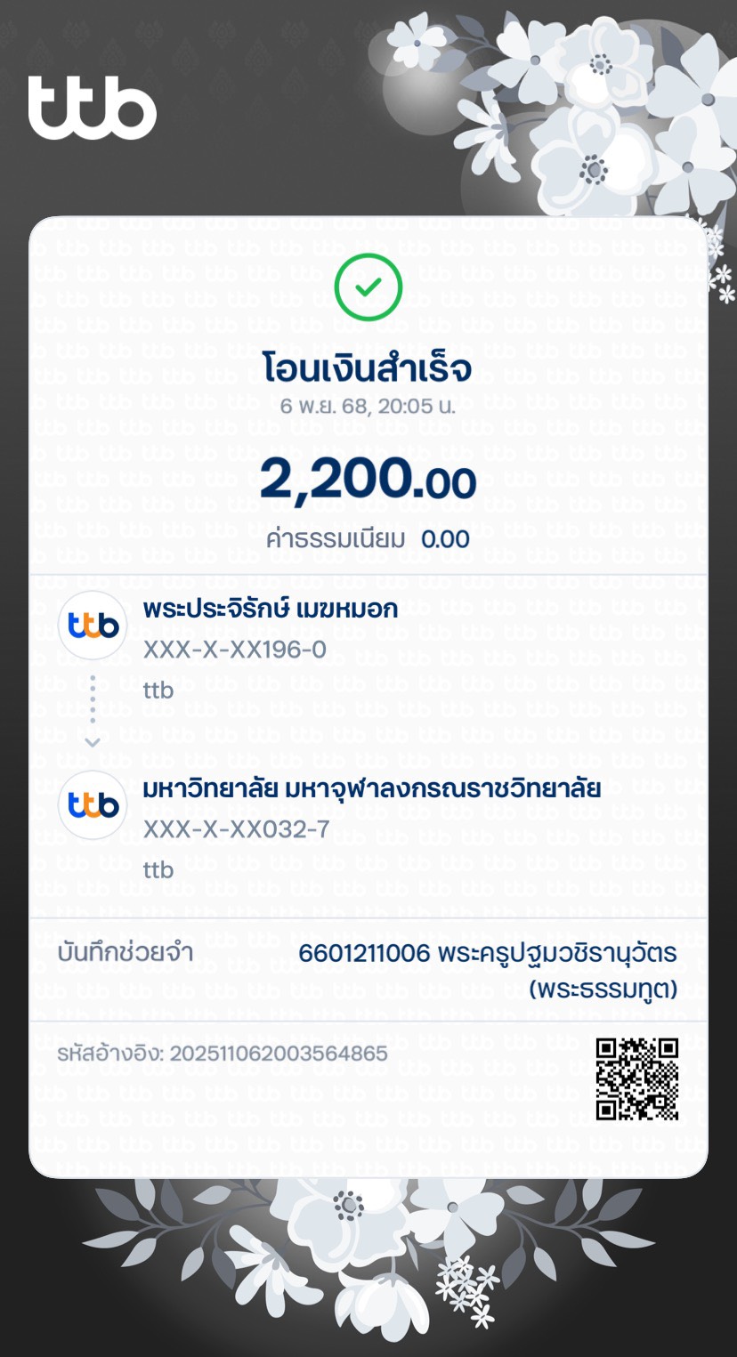 | รหัสนิสิต : 6601211006 | ชื่อ : พระครูปฐมวชิรานุวัฒน์ | ฉายา: สิริภทฺโท | นามสกุล: พนมสวย |