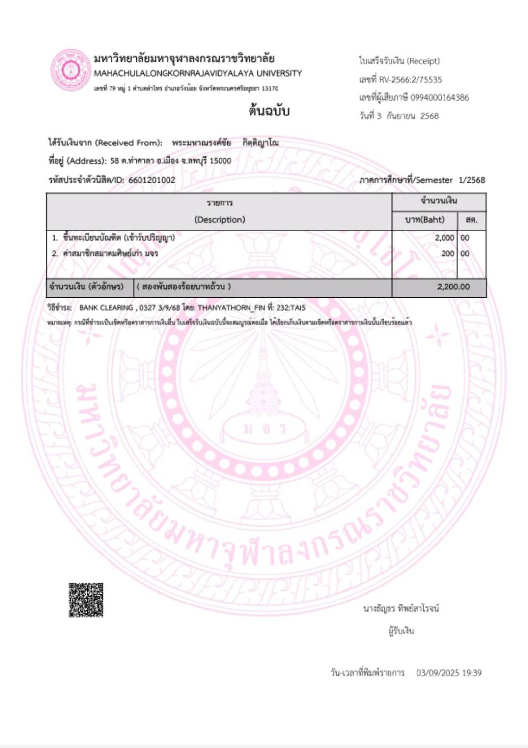 QR Code สำหรับสแกนเข้าร่วมพิธี * เข้าพิธีประสาทปริญญาวันที่ 7 ธันวาคม 2568 |