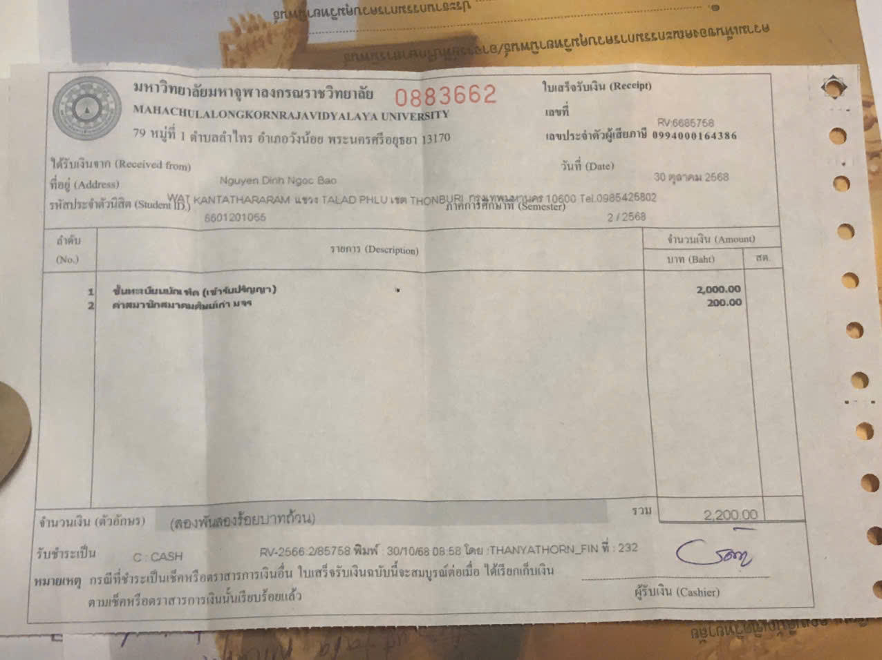 รหัสนิสิต : 6601201055 ชื่อ : Ngoc Bao Nguyen Dinh ฉายา: - นามสกุล: -