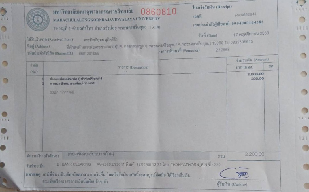 | รหัสนิสิต : 6501201055 | ชื่อ : พระกิตติยุทธ | ฉายา: สุกิตฺติโก | นามสกุล: เนาวดี |