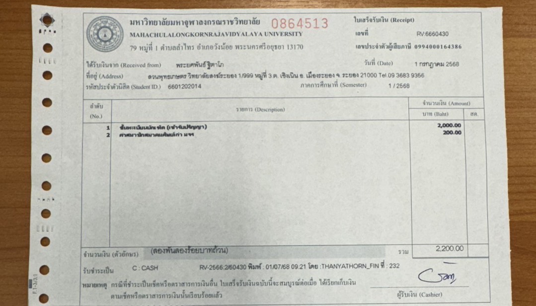 ใบเสร็จรับเงิน/เอกสารยืนยันการชำระเงิน(แนบเอกสาร)