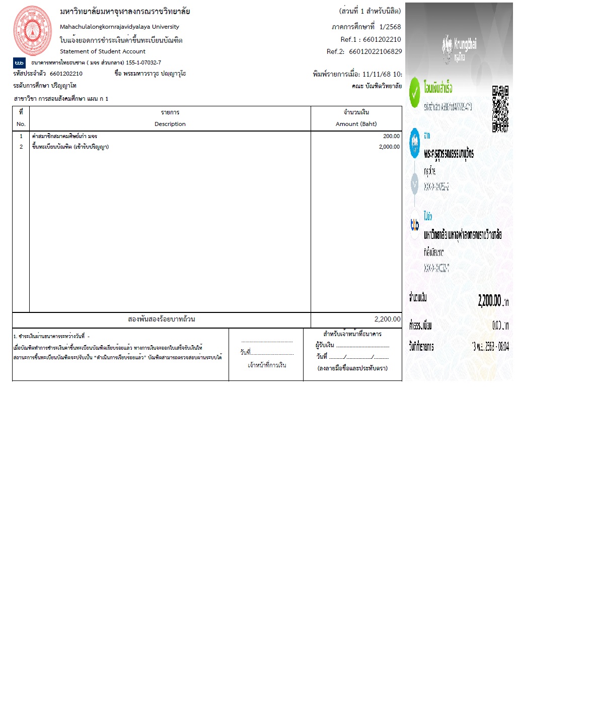 | รหัสนิสิต : 6601202210 | ชื่อ : พระมหาวราวุธ | ฉายา: ปญฺญาวุโธ | นามสกุล: แสนคูณ |