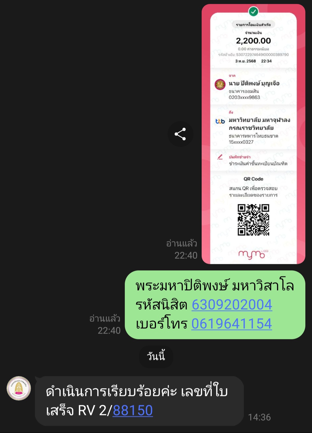 | รหัสนิสิต : 6309202004 | ชื่อ : พระมหาปิติพงษ์ | ฉายา: มหาวิสาโล | นามสกุล: บุญเจือ |