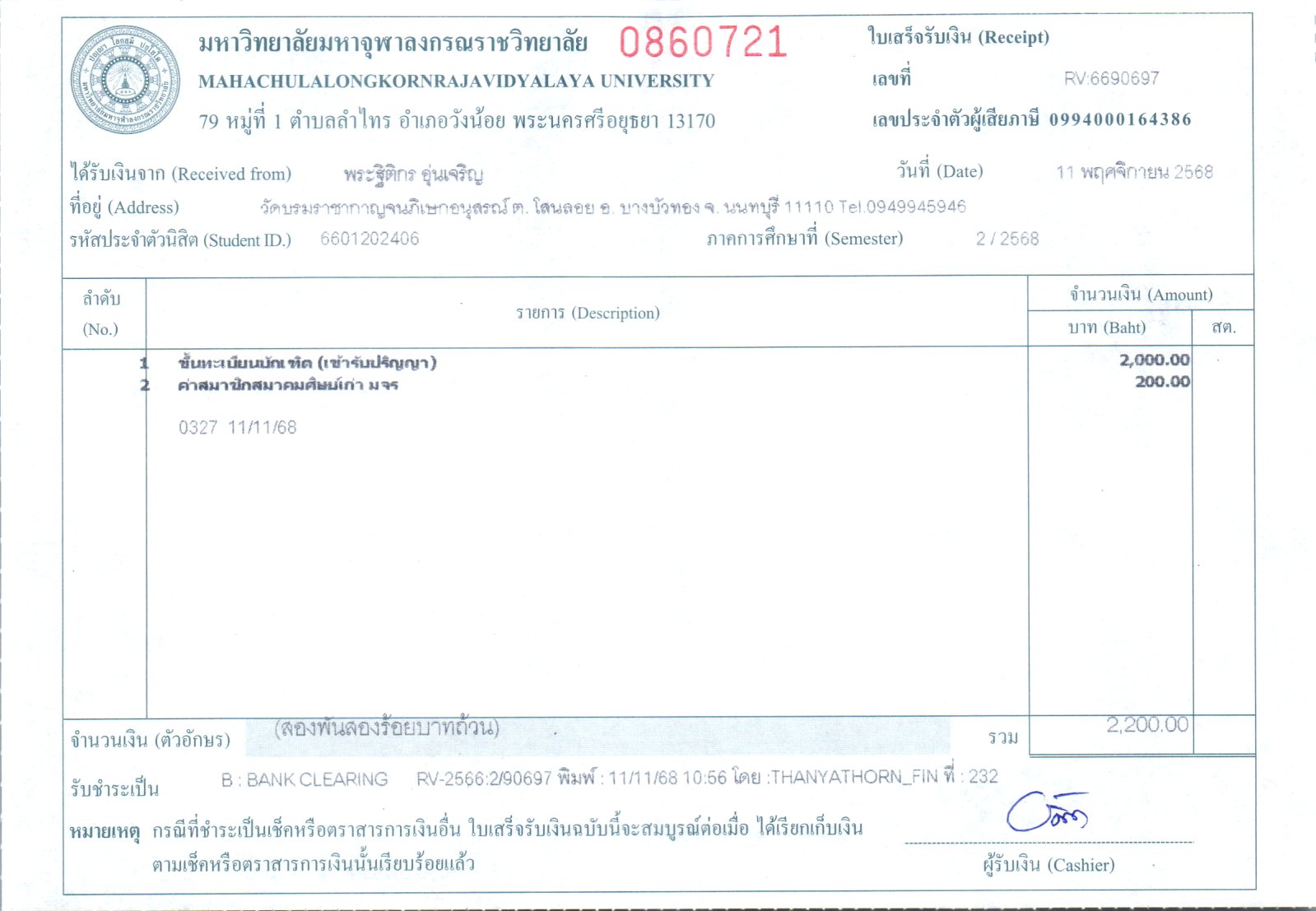 | รหัสนิสิต : 6601202406 | ชื่อ : พระฐิติกร | ฉายา: - | นามสกุล: อุ่นเจริญ |