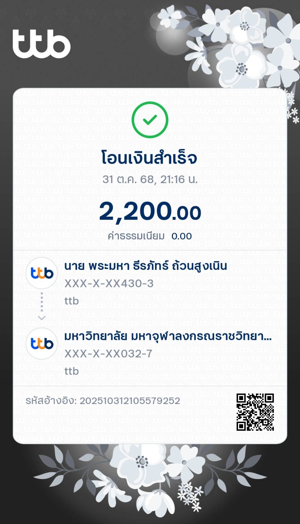 QR Code สำหรับสแกนเข้าร่วมพิธี * เข้าพิธีประสาทปริญญาวันที่ 7 ธันวาคม 2568 |