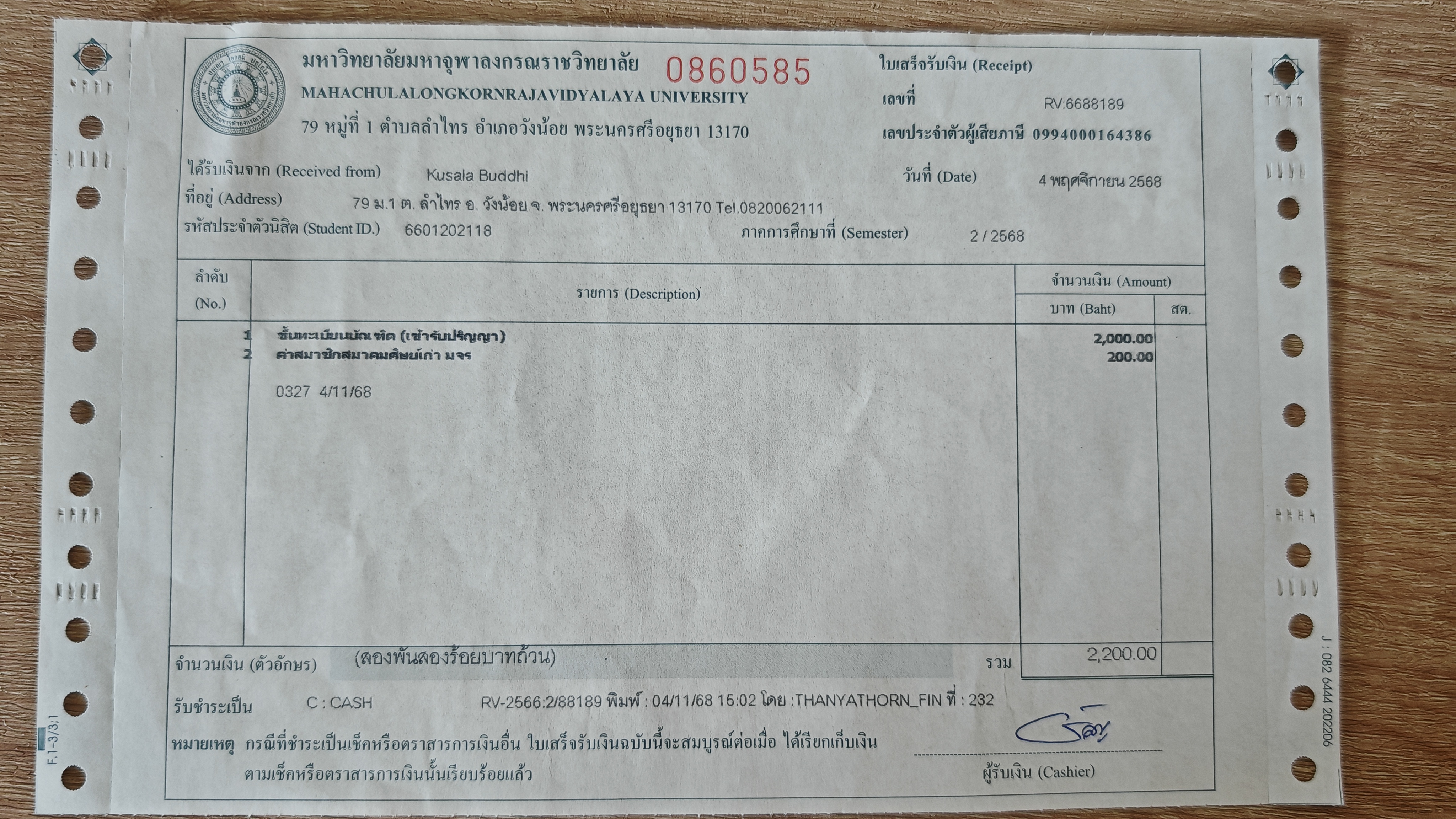 | รหัสนิสิต : 6601202118 | ชื่อ : Kusala Buddhi | ฉายา: - | นามสกุล: - |
