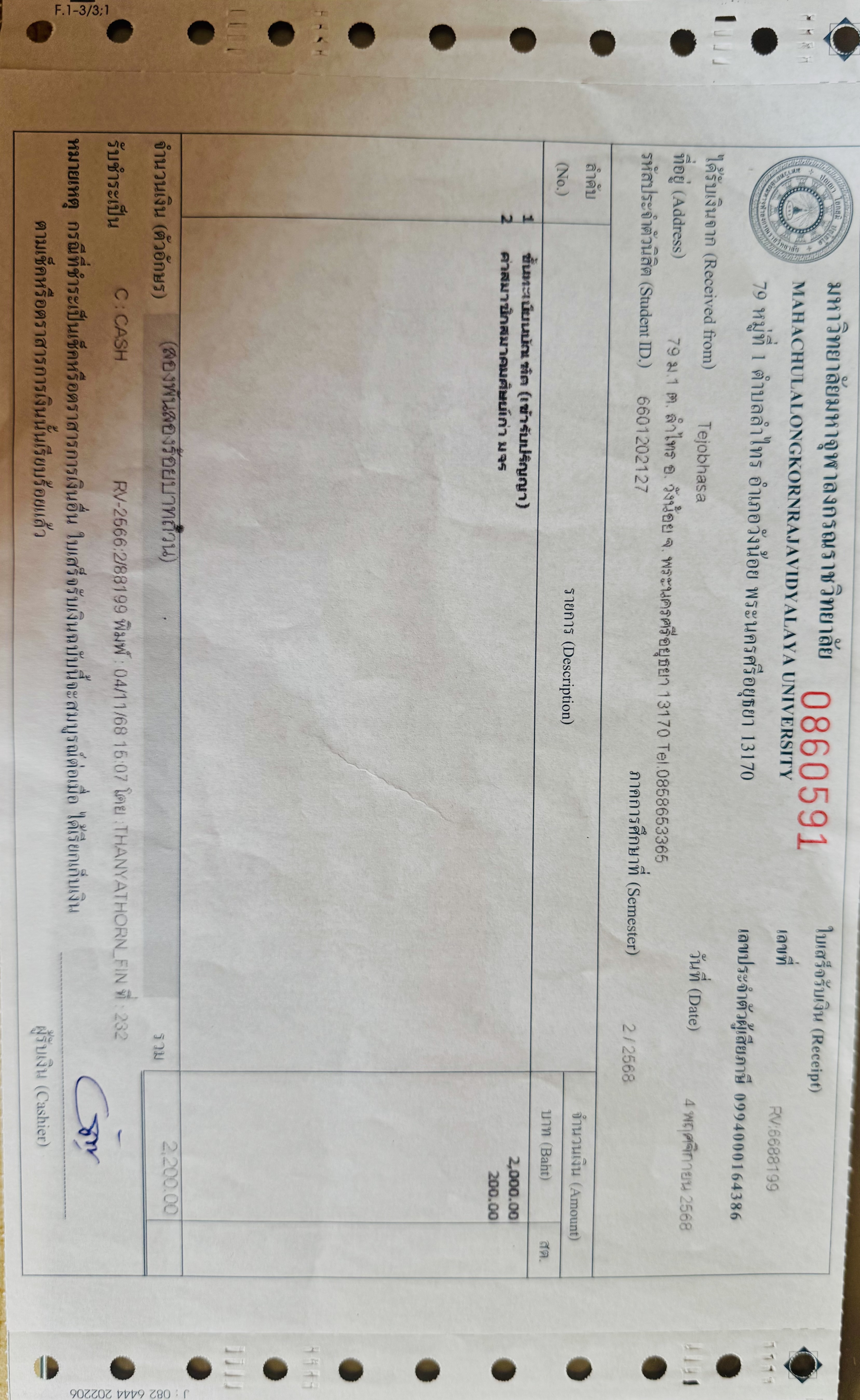 | รหัสนิสิต : 6601202127 | ชื่อ : Tejobhasa | ฉายา: - | นามสกุล: - |